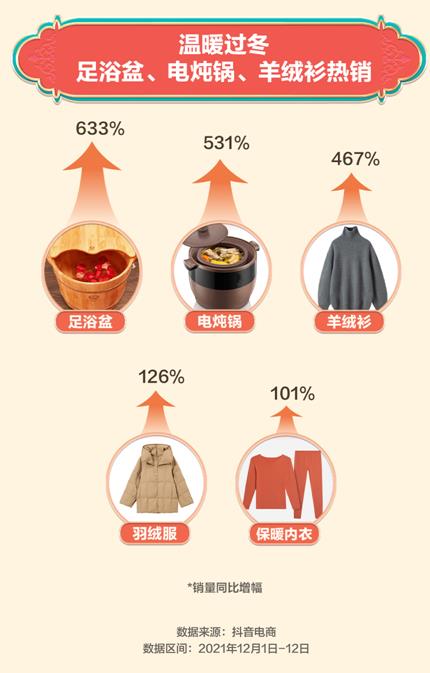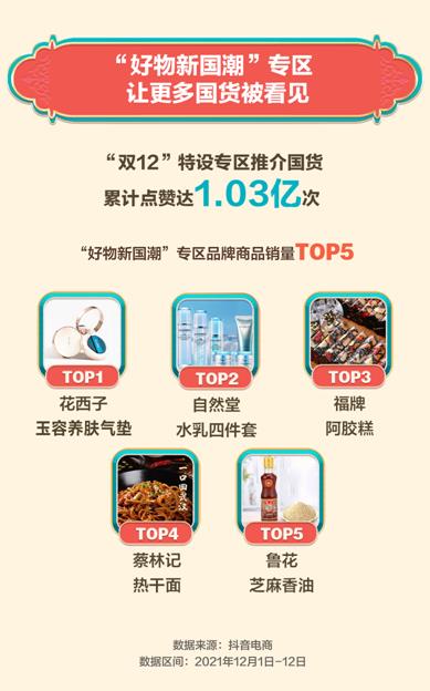 12月13日,抖音电商发布“双12”数据。12月1日至12日活动期间,该平台累计直播时长2208万小时,累计看播量达279亿次。在图书所有类目中,儿童文学类销量最高,儿童有声读物等新形式图书正在受到越来越多消费者关注。 ![]() 国潮专区获赞1.03亿次,国货、农产品热销 “好物新国潮”专区在活动期间持续推介品质国货。数据显示,该专区直播间共获赞1.03亿次。花西子玉容养肤气垫、自然堂水乳四件**阿胶糕、蔡林记热干面和鲁花芝麻香油位列该专区国货品牌商品销量前五,收获了市场新增量。 由抖音电商和字节跳动公益推出的“山货上头条”助农项目,不断帮助乡村电商人才发展和成长。数据显示,“双12”期间,在该平台售卖果蔬的新农人及商家数量是去年同期的2.16倍。四川果冻橙、陕西眉县猕猴桃、湘西外婆菜、延边辣白菜和大凉山冰糖心苹果等时令农货,颇受消费者欢迎。 不少非遗传承人和其手工艺品在“好物新国潮”专区被重点推介,“双12”期间非遗商品销量同比增长154%。在“看见手艺计划”的推动下,手艺人们讲述商品背后的历史,让“买卖”助力匠心传承。江苏省级非遗项目青铜失蜡铸造传承人陈巧生展示制炉技艺,吸引了不少00后年轻人了解中国炉文化;百年老店“祥禾饽饽铺”第三代传人张秀晨推陈出新,今年已卖出30多万单非遗糕点;津派玉雕传承人蒋宏利通过抖音,让传统玉雕技艺被更多人认识。 ![]() 冬奥会带动体育用品消费潮,暖冬好物销量激增 随着北京冬奥会进入倒计时,冰雪运动的魅力感染到了更多人。在抖音电商,“双12”期间冬奥会各类项目的相关商品销量激增。其中,雪橇相关体育用品销量增幅高达1741%,滑冰、滑雪项目相关商品销量紧随其后,同比增幅分别为682%和280%。 有不少消费者选择为孩子下单购置体育用具。诸如儿童雪橇板、初学者溜冰鞋、儿童滑雪服等商品,销量可观。在浓厚的奥运氛围中,孩子们尽情享受着冰雪运动的快乐。 活动期间,抖音电商鼓励达人和商家,创作“冬季暖心好物”等主题的短视频,借助内容满足消费者购物需求。据统计,足浴盆、电炖锅、羊绒衫在“双12”销量大涨,同比增幅分别达633%、531%和467%。羽绒服和保暖内衣等商品也受到了消费者青睐。 ![]() 民俗文化消费南北各不同,图书销量增长127% 我国有“迎冬”“补冬”的传统习俗,其中羊肉历来是冬季进补的重要食材之一。据统计,“双12”期间抖音电商内各类羊肉受热捧,内蒙古羊肉销量同比增长高达694%。 不同地域的人们也在历史沿袭中形成了各具特色的冬季饮食偏好。该平台数据显示,北方人在寒冷的冬天,偏爱购买羊肉卷、白酒和饺子;而南方消费者则喜欢购买姜母鸭、菌汤包和花胶鸡。无论是热气腾腾的铜锅涮肉,还是鲜美营养的菌汤,入口都可驱散一层寒意。 文化消费方面,抖音电商通过“全民好书计划”不断推动新书、好书售卖。“双12”期间,《柳林风声》《儿童版世界简史》《洛克菲勒写给儿子的38封信》等书籍受到了读者喜爱,图书整体销量同比增长127%,达人王芳在其单场直播中卖出了15万套书。在图书所有类目中,儿童文学类销量最高,儿童有声读物等新形式图书正在受到越来越多消费者关注。 抖音电商相关负责人表示,短视频和直播将商品的更多细节与内涵呈现给了广大消费者,平台会持续通过多项活动,助力优质的国货品牌、地方农特产、非遗图书及各类文化消费品销售,满足大众多元的品质购物需求。 |